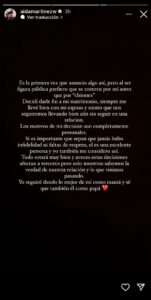"Es la primera vez que anuncio algo así, pero como figura pública prefiero que sepan de mí que a través de 'chismes'. He decidido poner fin a mi matrimonio, siempre me lleve bien con mi marido y siento que seguiremos llevándonos bien incluso entonces, si no continuamos la relación. Los motivos de mi decisión son completamente personales", escribió Martínez.