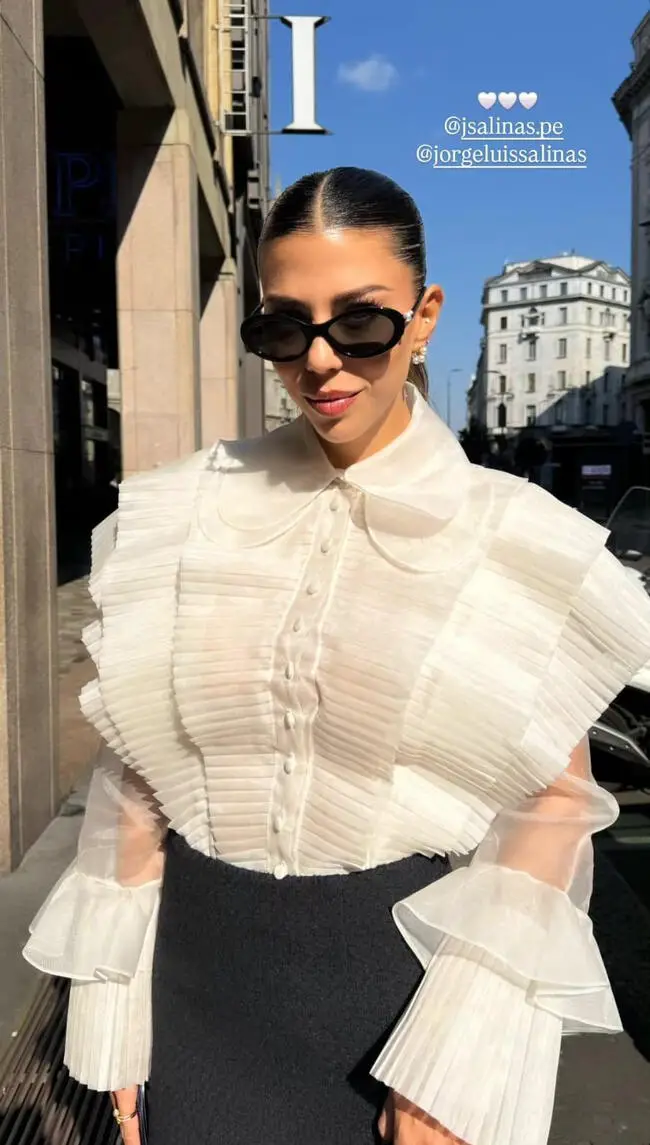 Belaúnde no solo brilló con su look, sino que también compartió cada momento del evento con sus seguidores a través de las redes sociales, destacando lo relevante que era para ella que la moda peruana estuviera recibiendo la atención que merece en las capitales internacionales del diseño. Su estilo, que combinaba sobriedad con toques vanguardistas, reflejaba a la perfección el espíritu cosmopolita de la jornada.
