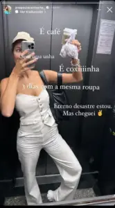 “É café, Sem uma unha, É coxiiiinha, 3 días con la misma ropa. Este es un desastre perpetuo. Mas chenguei (Es café, sin una uña, 3 días con la misma ropa. Soy un eterno desastre, pero ya llegué)”, escribió Ana Paula.
