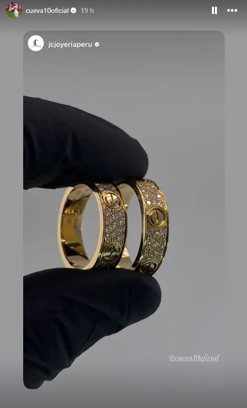 En ese contexto, la fotografía compartida por Cueva —que habría sido difundida inicialmente por una joyería— incrementó las especulaciones sobre un posible compromiso. Se trata de una pieza doble y brillante que despertó comentarios entre los fans, quienes comenzaron a preguntarse si se trataría de una futura pedida de mano.