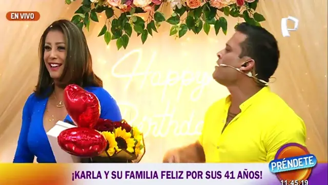 La producción de Préndete organizó una celebración sorpresa para el cumpleaños de Karla Tarazona, en la que participaron sus hijos pequeños. A pesar de esto, Christian Domínguez sorprendió a su ex pareja con un mensaje cariñoso que la hizo sonreír.