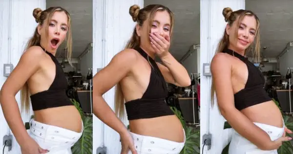 En el clip se puede ver a la famosa influencer sorprendida al ver cómo luce cuando está embarazada.