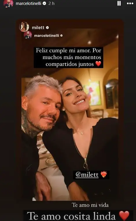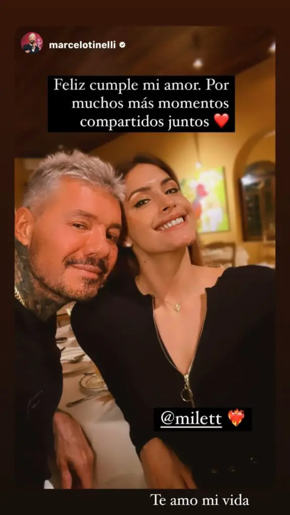 A través de sus historias en Instagram, Tinelli no escatimó en demostrar el inmenso amor que siente por Milett, compartiendo una fotografía entrañable de la pareja con un mensaje cargado de cariño: "Feliz cumpleaños, mi amor. Que sean muchos más los momentos compartidos juntos". Este gesto romántico no pasó desapercibido para Figueroa, quien respondió rápidamente con un dulce "Te amo, mi vida" en la misma plataforma.