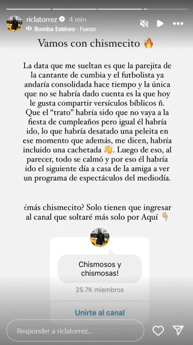 La narración de La Torre sugiere que aunque se había acordado que Cueva no asistiría a la fiesta, terminó yendo de todos modos, lo que provocó una confrontación en ese momento, incluyendo la mencionada cachetada. Además, según el influencer, la relación entre Pamela Franco y Christian Cueva no habría empezado recientemente, sino que sería algo consolidado desde hace tiempo, a diferencia de lo que creía Pamela López, quien ahora parece enfocarse en compartir mensajes religiosos en redes sociales.