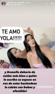 “¡¡¡Te amo Yola!!!! ¡Y Brunella debería prestar más atención a a quién le escribe su marido en lugar de burlarse de los tontos y ofenderse!", escribió Pilar en un vídeo en el que presume a Medina.