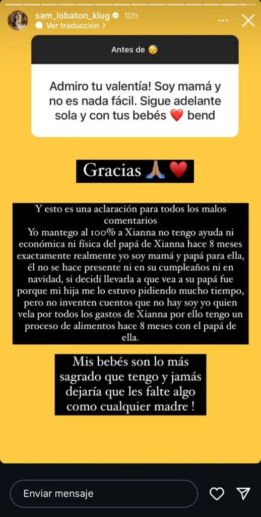Esta situación provocó una oleada de apoyo por parte de sus seguidores, quienes expresaron admiración por la valentía de Samahara al enfrentar la crianza de su hija sola. Uno de los mensajes destacados resaltaba su fortaleza como madre soltera y su capacidad para seguir adelante a pesar de las dificultades.
